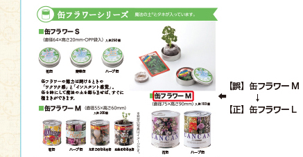 訂正内容:缶フラワーシリーズ 【誤】缶フラワーM 【正】缶フラワーL