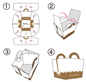 2.折り線に従って組み立て、矢印の部分は組み立てた鉢の内側へ折り込みます。