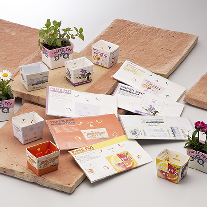 全面オリジナルデザインのペーパークラフトポットも承ります。