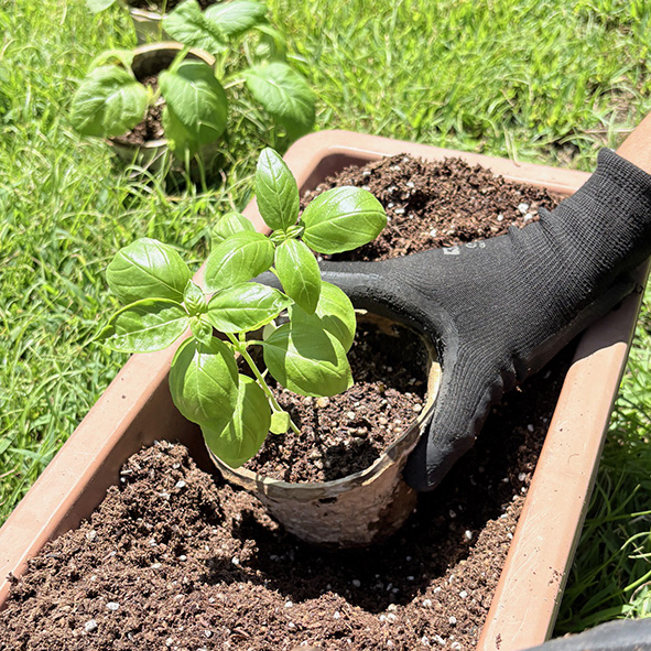 古紙のリサイクルで作られたECOポットは、発芽後そのまま大きな鉢や庭に植えると土に還ります。
