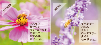 美しく彩る花々は甘い香りでミツバチを誘います。また、ハーブの花もミツバチは大好き。