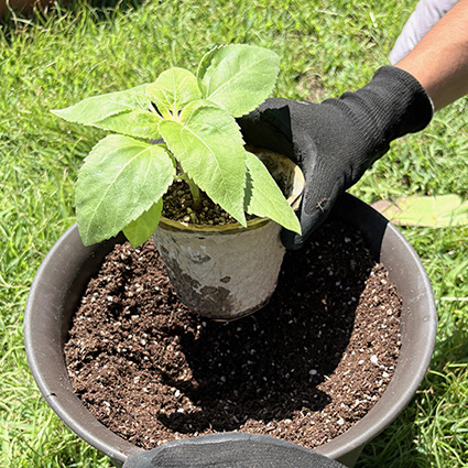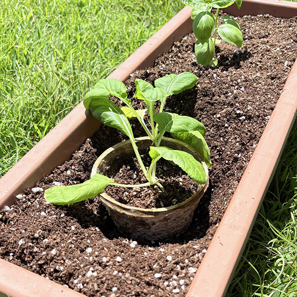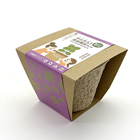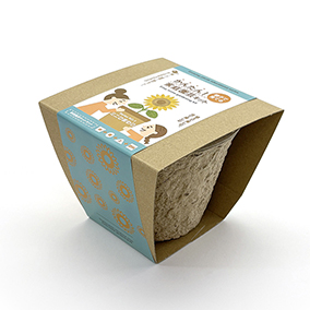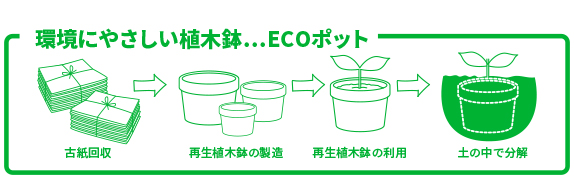 古紙のリサイクルで作られたECOポットは、発芽後そのまま大きな鉢や庭に植えると土に還ります。