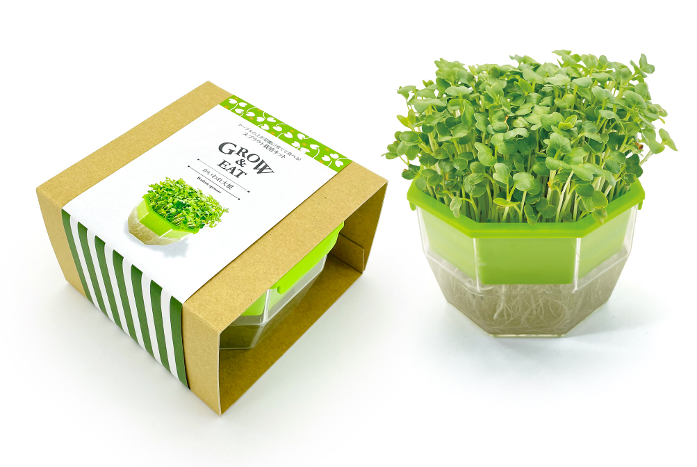 仕様 サイズ:縦128×横126×高さ80mm 内容:かいわれ大根のタネ・水栽培容器(縦125×横125×高さ77mm)・説明書